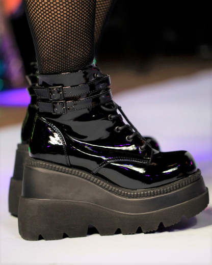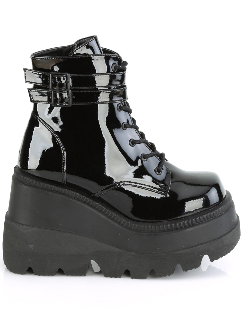4 1/2" (114mm) Wedge Platform Lace-Up Front Ankle Boot w/ Double Buckled Ankle Straps, Inside Zip Closure