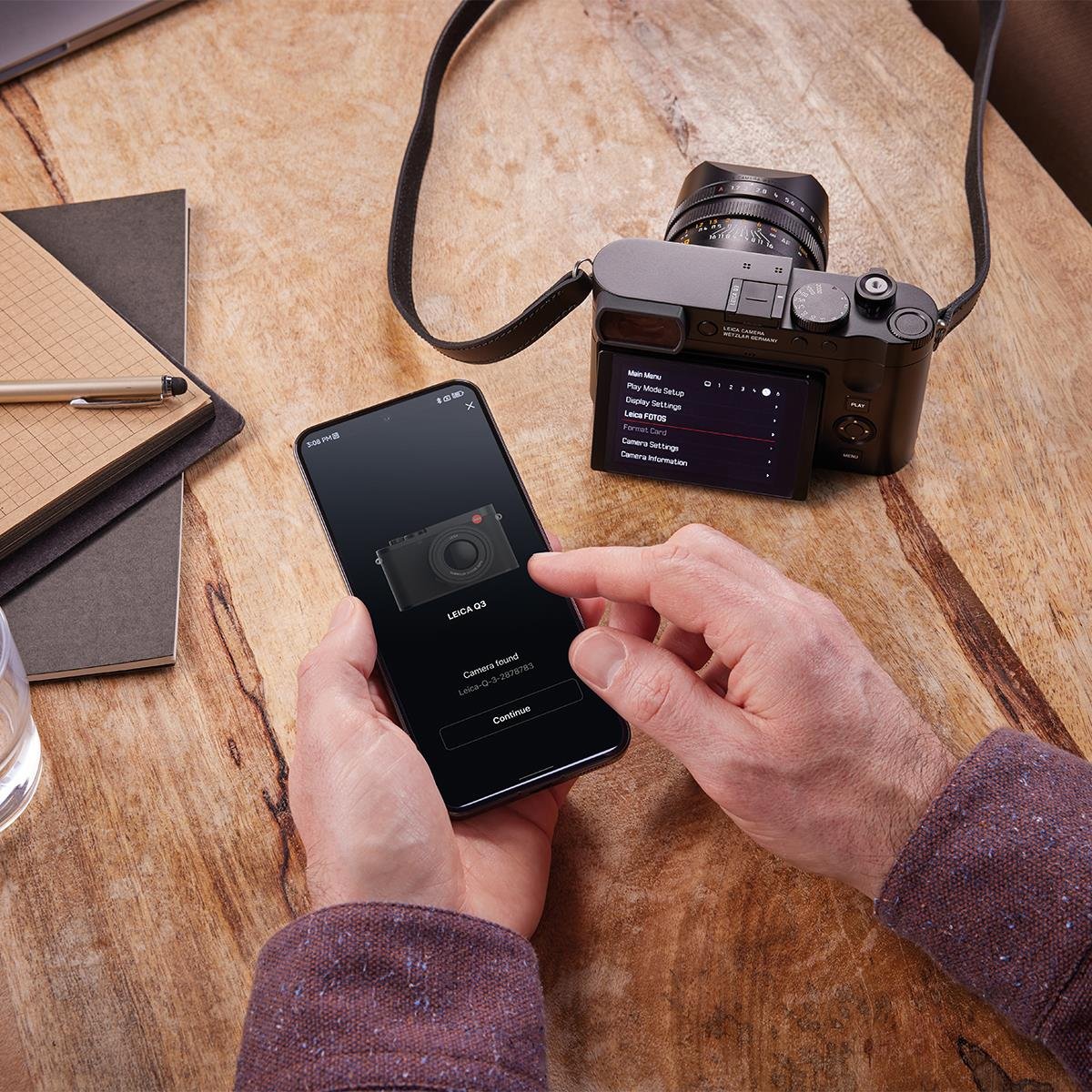 With a stable connection and high data transfer rates to the Leica FOTOS app, videos can now be loaded from the camera to a smartphone, and special 'Leica Looks' can be imported onto the camera for beautiful JPEG images. Various connection modes from 'Eco' to 'Performance' improve the mobile workflow and energy management of the Leica Q3. The Apple certification "Made for iPhone® and iPad@" accessory and the included Leica FOTOS cable, make the Leica Q3 the ideal tool to express the creative vision of users working with it daily.